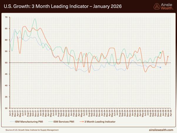 Recently, the AI boom has been added at the point where we believe this global liquidity cycle has peaked. Of course, we could be wrong, but we simply cannot see where additional liquidity would come from to drive this cycle significantly higher. It would likely take some kind of crisis, potentially in the debt markets, followed by action from the Federal Reserve to push our index to new highs. With the average liquidity cycle lasting around 65 months, caution is warranted at this stage.